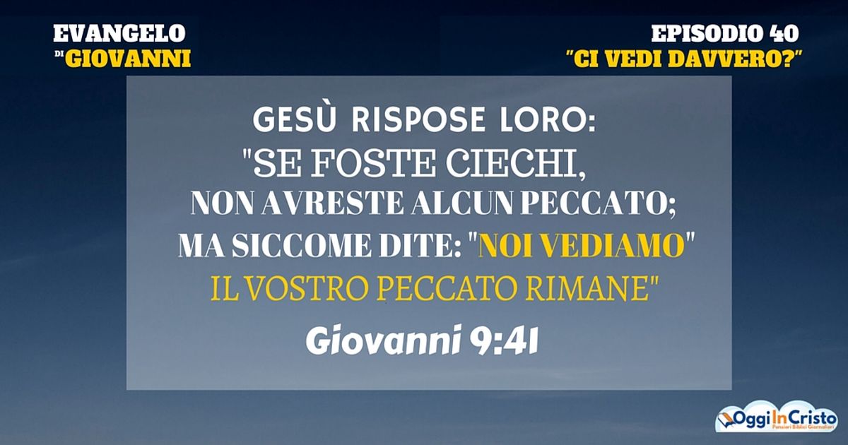 Gesù disse: «Io sono venuto in questo mondo per fare un giudizio, affinché quelli che non vedono vedano, e quelli che vedono diventino ciechi». Alcuni farisei, che erano con lui, udirono queste cose e gli dissero: «Siamo ciechi anche noi?» Gesù rispose loro: «Se foste ciechi, non avreste alcun peccato; ma siccome dite: “Noi vediamo”, il vostro peccato rimane.