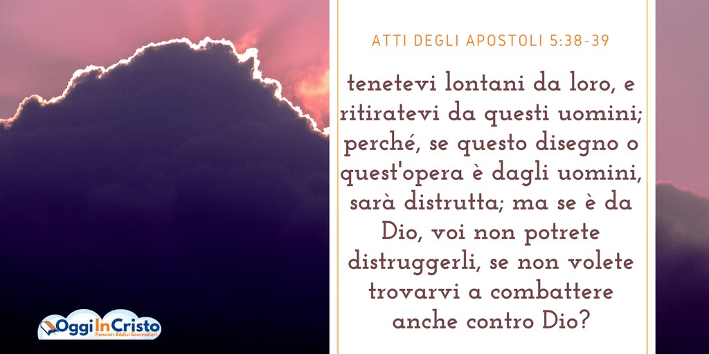 Il ragionamento di Gamaliele convinse anche gli altri. Chissà se anche altri, come Gamaliele, cominciavano ad avere dei ragionevoli dubbi e a manifestare un po’ di umiltà di fronte all’opera di che Dio stava facendo attraverso gli apostoli? Forse qualcuno cominciava a chiedersi: “E se fosse da Dio”? È molto probabile visto che, leggendo il capitolo seguente (At 6:7), apprenderemo che un gran numero di sacerdoti cominciò a credere nel Signore Gesù.