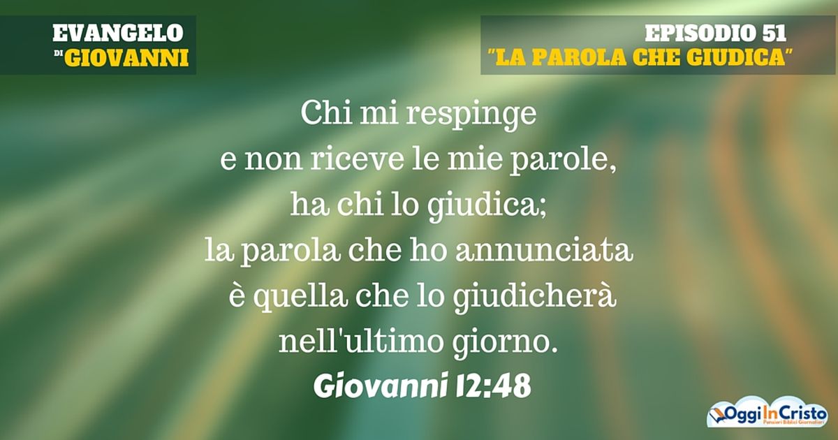 Gesù confermò proprio questo duplice aspetto della sua parola. La fede in lui era legata alla fede in Dio. Chi diceva di credere in Dio avrebbe creduto anche in lui e viceversa. Egli era venuto per illuminare con la sua luce e salvare il mondo, non per giudicarlo. Tuttavia se essi non avessero ascoltato le sue parole, il loro cuore si sarebbe indurito, sarebbero rimasti nelle tenebre e sarebbero rimasti sotto giudizio. Infatti, opporsi alla sua parola significava rifiutare la parola di Dio. La parola di Dio è vita eterna per chi la ascolta ma diventa giudizio per chi la rifiuta e vi si oppone.
