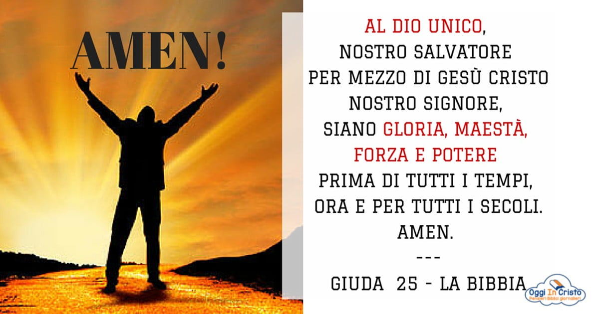 Possiamo scegliere di sprecare la nostra vita, perdendo l’occasione di conoscere Dio come quegli infiltrati al tempo di Giuda che vivevano tra i cristiani ma non avevano sperimentato una vera trasformazione interiore. Oppure possiamo riconoscere l’unico vero Dio che ci ha salvato attraverso Gesù Cristo, affidare a lui la nostra vita sapendo che Egli può preservarci mentre attendiamo il ritorno di Gesù Cristo. In questo caso possiamo accogliere l’invito di Giuda che conclude la sua lettera invitandoci ad unirci a lui nel lodare ed esaltare l’unico Dio, confermando e condividendo le sue parole con il nostro “Amen”.