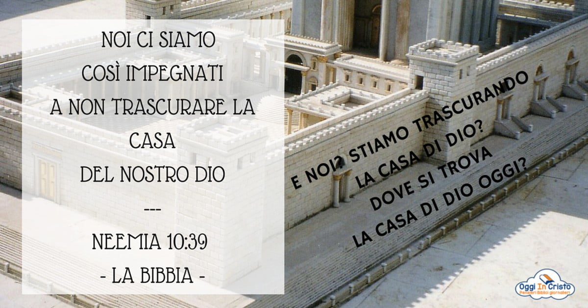 E noi? In quale modo possiamo non trascurare la casa di Dio? E, soprattutto, dove si trova la casa di Dio oggi? Su quest’ultimo punto la bibbia è molto chiara, infatti in brani come 1Corinzi 3:16 e 2Corinzi 6:16 è scritto che siamo noi stessi la dimora di Dio, il tempio di Dio .