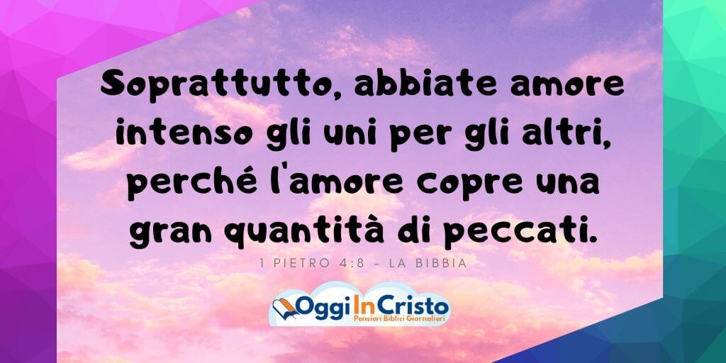 La fine di tutte le cose è vicina; siate dunque moderati e sobri per dedicarvi alla preghiera. Soprattutto, abbiate amore intenso gli uni per gli altri, perché l’amore copre una gran quantità di peccati.