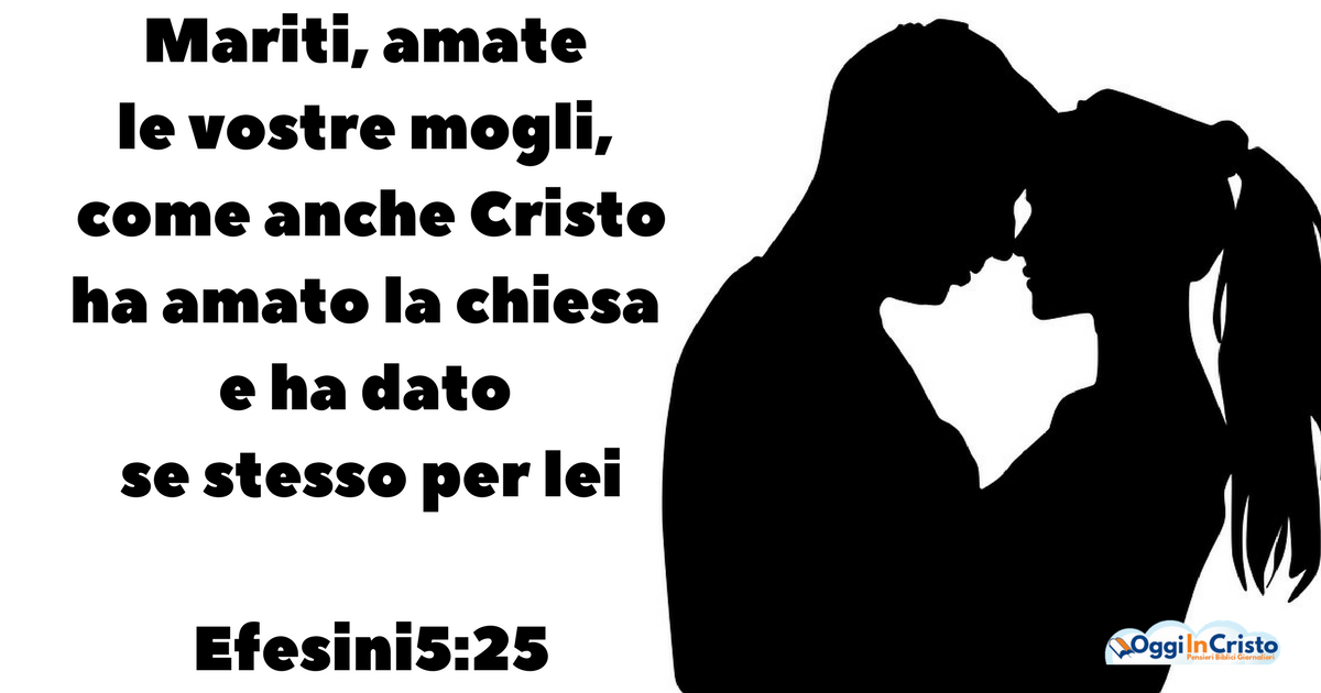 Mariti, amate le vostre mogli, come anche Cristo ha amato la chiesa e ha dato se stesso per lei, per santificarla dopo averla purificata lavandola con l’acqua della parola, per farla comparire davanti a sé, gloriosa, senza macchia, senza ruga o altri simili difetti, ma santa e irreprensibile. Allo stesso modo anche i mariti devono amare le loro mogli, come la loro propria persona. Chi ama sua moglie ama se stesso. Infatti nessuno odia la propria persona, anzi la nutre e la cura teneramente, come anche Cristo fa per la chiesa, poiché siamo membra del suo corpo. Perciò l’uomo lascerà suo padre e sua madre e si unirà a sua moglie e i due diverranno una carne sola. Questo mistero è grande; dico questo riguardo a Cristo e alla chiesa. Ma d’altronde, anche fra di voi, ciascuno individualmente ami sua moglie, come ama se stesso; e altresì la moglie rispetti il marito.