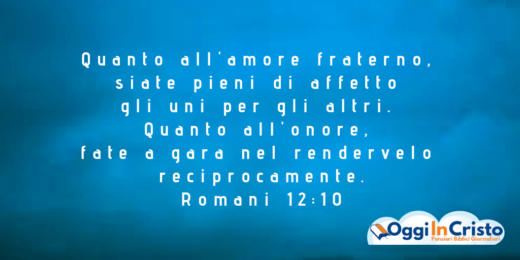 Avendo pertanto doni differenti secondo la grazia che ci è stata concessa, se abbiamo dono di profezia, profetizziamo conformemente alla fede; se di ministero, attendiamo al ministero; se d’insegnamento, all’insegnare; se di esortazione, all’esortare; chi dà, dia con semplicità; chi presiede, lo faccia con diligenza; chi fa opere di misericordia, le faccia con gioia. L’amore sia senza ipocrisia. Aborrite il male e attenetevi fermamente al bene. Quanto all’amore fraterno, siate pieni di affetto gli uni per gli altri. Quanto all’onore, fate a gara nel rendervelo reciprocamente. Quanto allo zelo, non siate pigri; siate ferventi nello spirito, servite il Signore; siate allegri nella speranza, pazienti nella tribolazione, perseveranti nella preghiera, provvedendo alle necessità dei santi, esercitando con premura l’ospitalità.